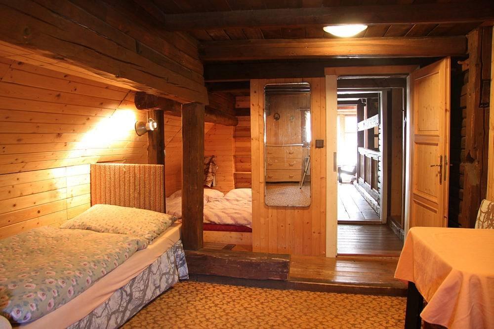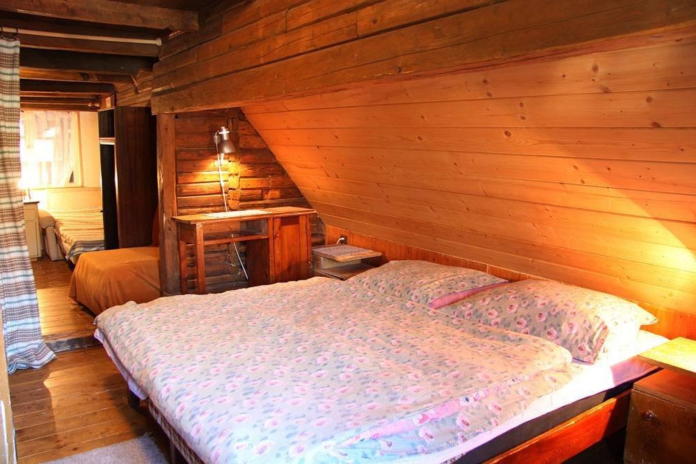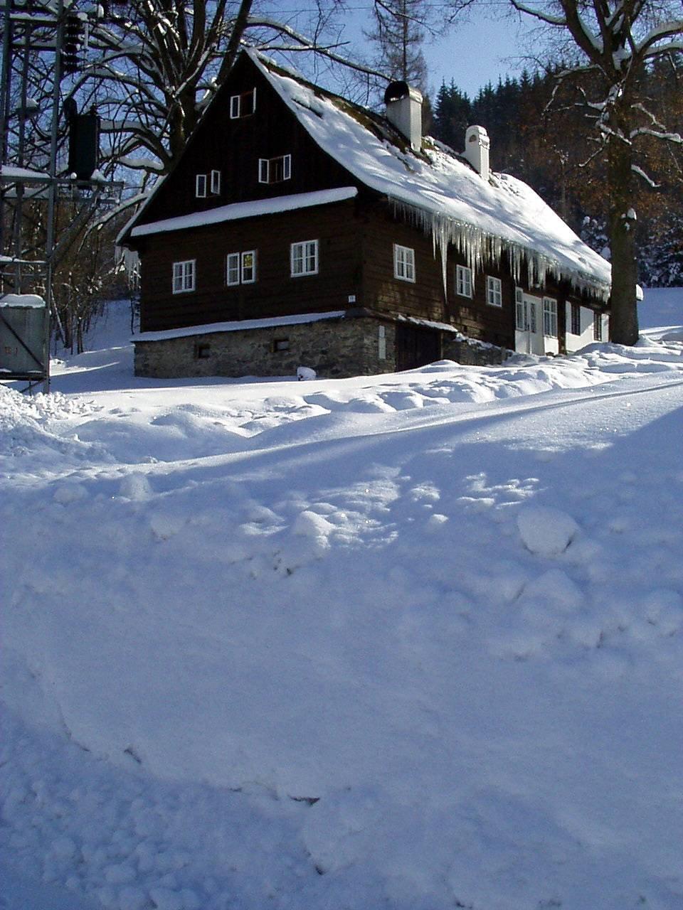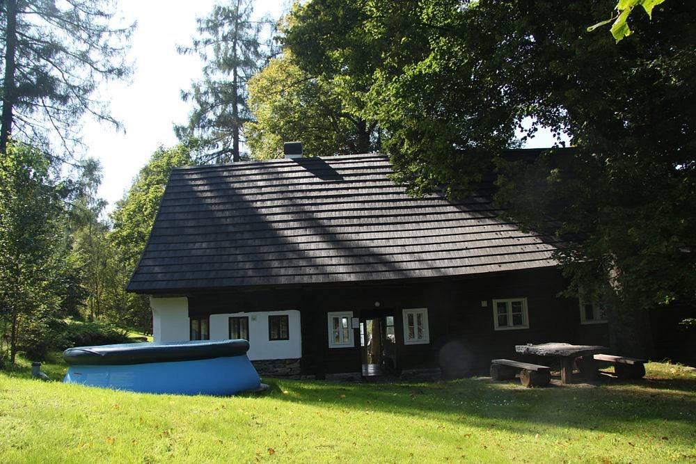 Velká rekreační stylová chalupa poskytuje prostornou obytnou kuchyň s kachlovými kamny a posezením, el. sporák s troubou, odsávač par, myčka, lednice, mikrovlnná trouba, kávovar, varná konvice, barevná kabelová televize, WIFI, rádio, krb, společenské hry. K dispozici koupelna (s vanou, sprchou, automatickou pračkou), WC, velký vstupní prostor s posezením, lednicí, mrazákem, ložnice (2x 2 lůžka+ přistýlka, 3x 4 lůžka + přistýlka), sauna, lyžárna, úschovna kol, postýlka. Vytápění je kachlovým sporákem, el. V letním období zahradní nábytek, přenosný gril, udírna, bazén o průměru 3 m a hloubce 0,7 m. Součástí objektu je louka 2000 m2, ohniště s posezením. Majitel neposkytuje ložní prádlo, pouze za poplatek 80 Kč/ks. Žádá vratnou kauci ve výši 2.000,- Kč, úhradu el. energie, plynu, dřeva a rekreačního poplatku (29,- Kč/os./noc osoby 18-70 let). Pes povolen 150,- Kč/noc. Parkování 15 m od objektu. Zastávka ČSAD 2 km, ČD 2 km. Restaurace 2 km, bar a potraviny 500 m.