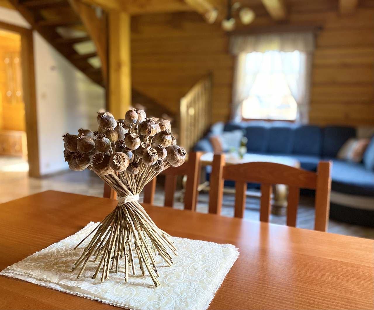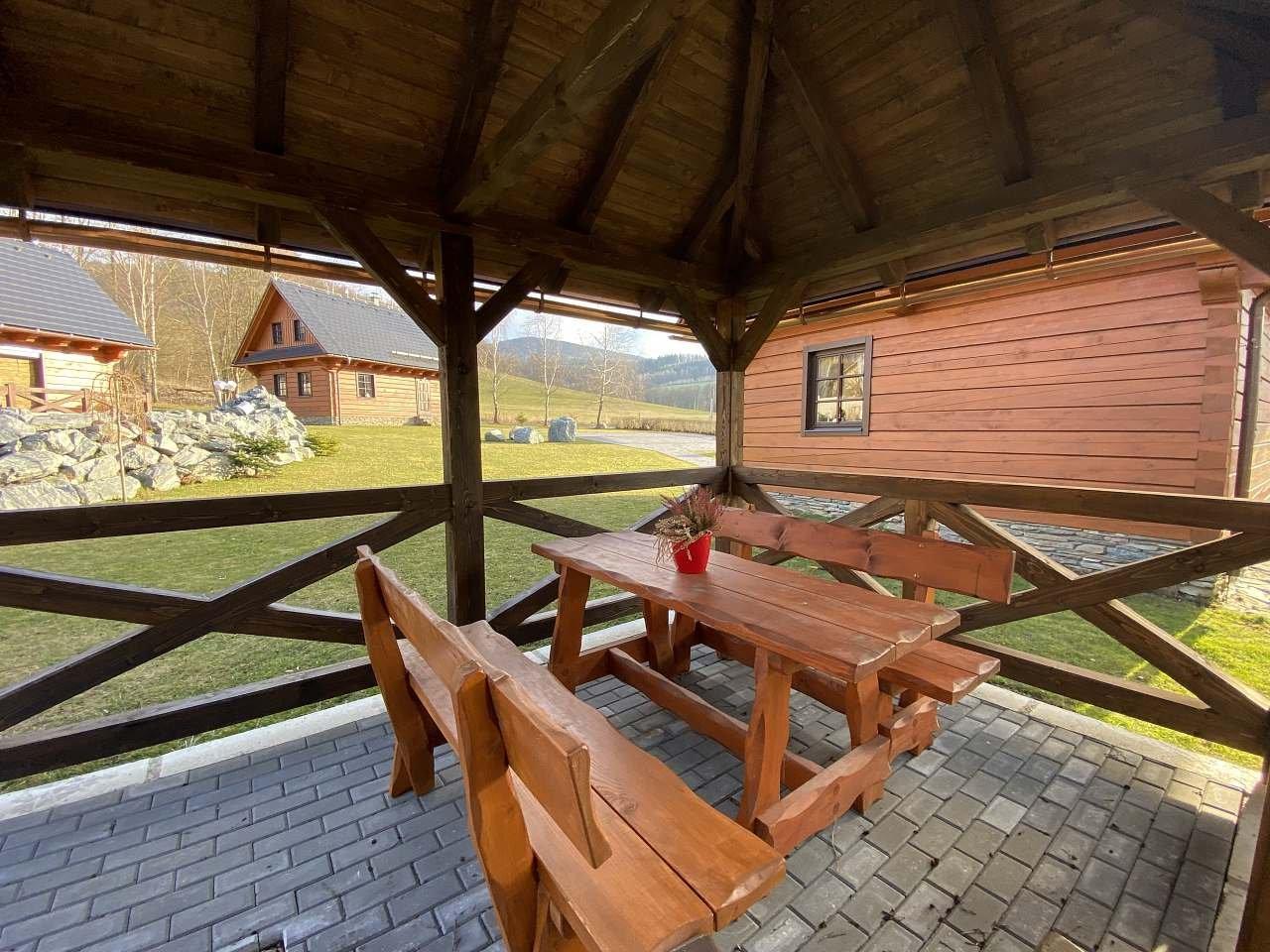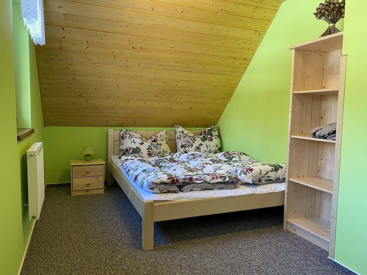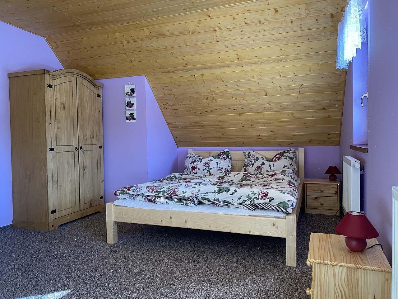Ubytování v útulné roubence (jsou k dispozici dvě na jednom pozemku) pod Skřítkem pod kopcem Kamencem, na konci obce, u lesa, v oplocené zahradě živým plotem, u vlastního rybníku s možností sportovního rybolovu (pstruzi, siveni, kapři), při zamrznutí na dírkách, po dohodě s majitele rybolov vlastním prutem nebo po zapůjčení. Majitel půjčuje loďku. WIFI připojení v ceně pobytu. V nabídce obytná místnost s posezením a jídelním koutem, kachlovými kamny, barevnou televizí. Kuchyňský kout: elektrický sporák, mikrovlnná trouba, varná konvice, presovač, myčka na nádobí, lednice s mrazákem. Koupelna se sprchovým koutem, WC, pisoár. V patře 2 ložnice: 1x 3 lůžka, 1x 4 lůžka, částečně koberce. Pitná voda. Vytápění elektrokotlem, v přízemí kachlovými kamny, v objektu je podlahové topení. Venkovní ohniště, od pozdního jara koupací jezírko 10x5 m hloubka 140 cm. Kryté uzavřené posezení – společenská místnost se stoly a lavicemi, grilem s udírnou, sauna. Udržovaný travnatý prostorný pozemek. Parkování na vlastním pozemku. Majitel poskytuje povlečení, je v ceně pobytu. Žádá úhradu spotřebované elektrické energie a rekreačních poplatků. Neprovede-li klient konečný základní úklid, žádá majitel poplatek ve výši 500 Kč. Povlečení v ceně pobytu. Pobyt domácích zvířat není povolen. V okolí obchod a restaurace 5 km, v době duben – září restaurace u rybníku. U roubenky lze bruslit. V místě jsou značené cykloturistické stezky.